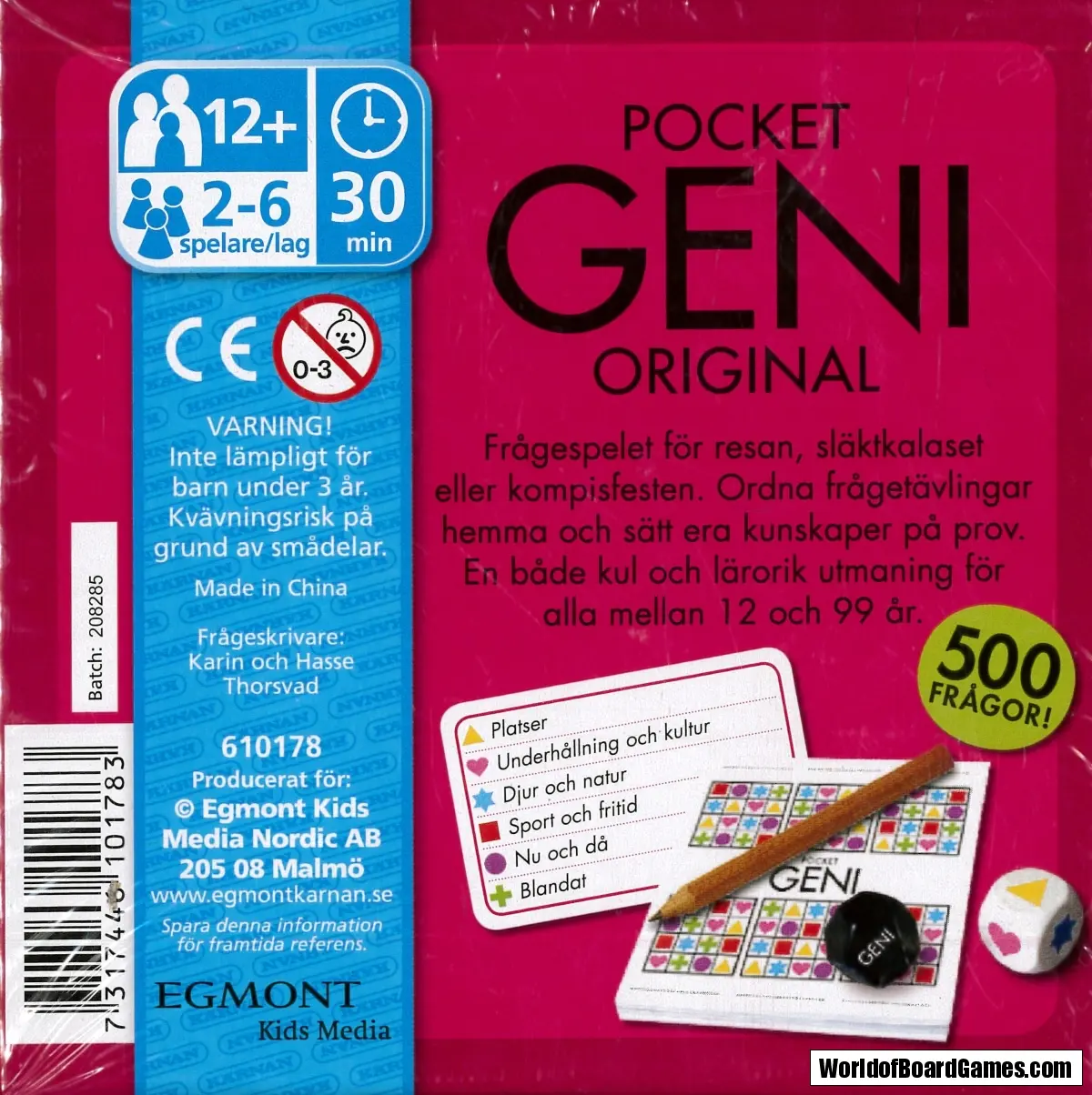 För 2-6 spelare eller lag mellan 12 och 99 år. Speltid ca 30 minuter.