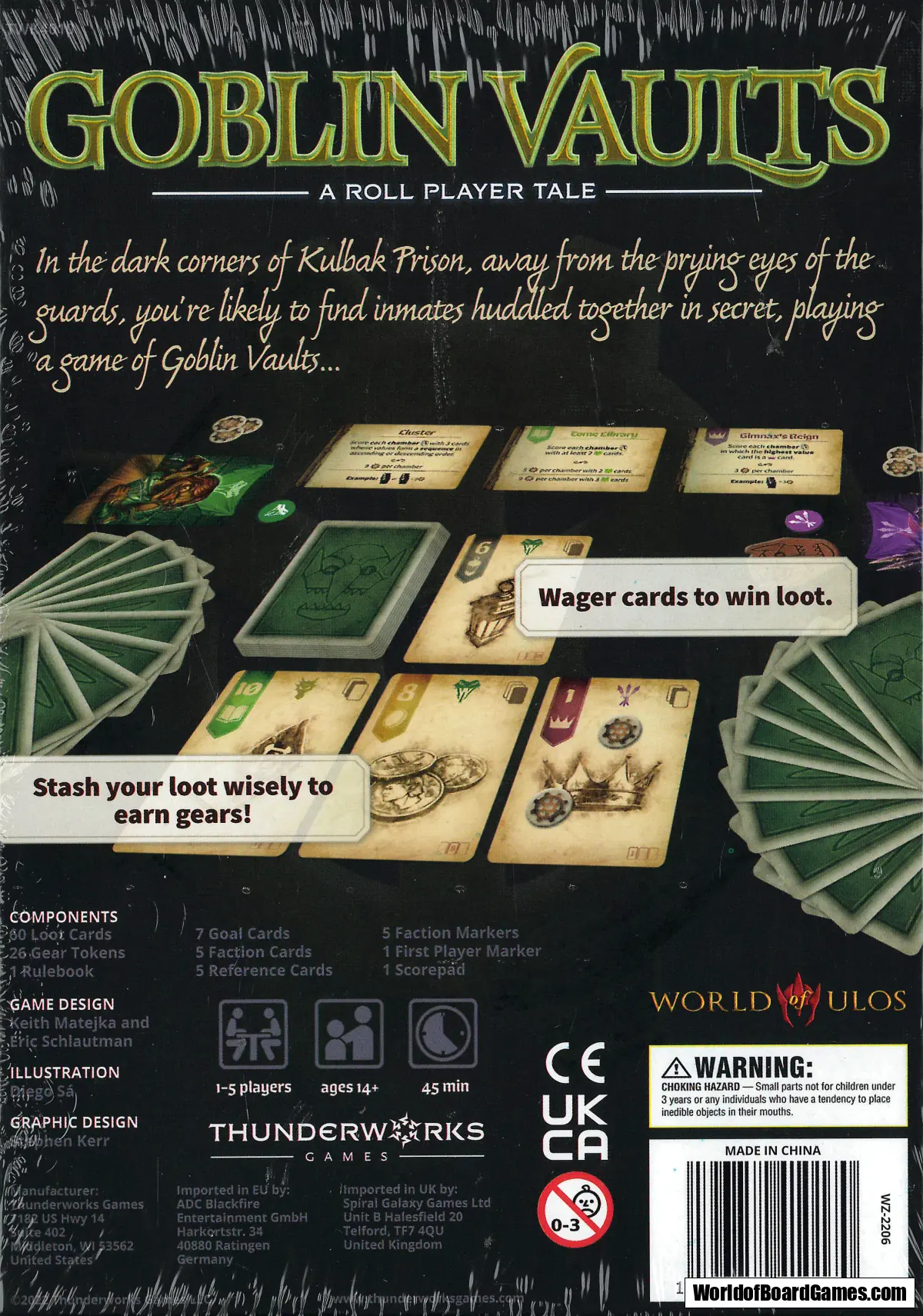 Wager cards to win loot from the central cell block and stash it wisely in your vault to earn gears. Earn gears based on the position of cards in your vault and from scoring objectives that change each game.