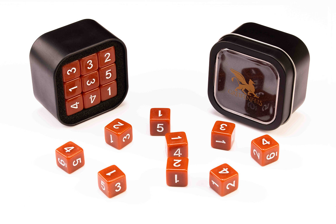 Greifenfels D6 Series innehåller 18 stycken 16 mm akryltärningar m. siffror.