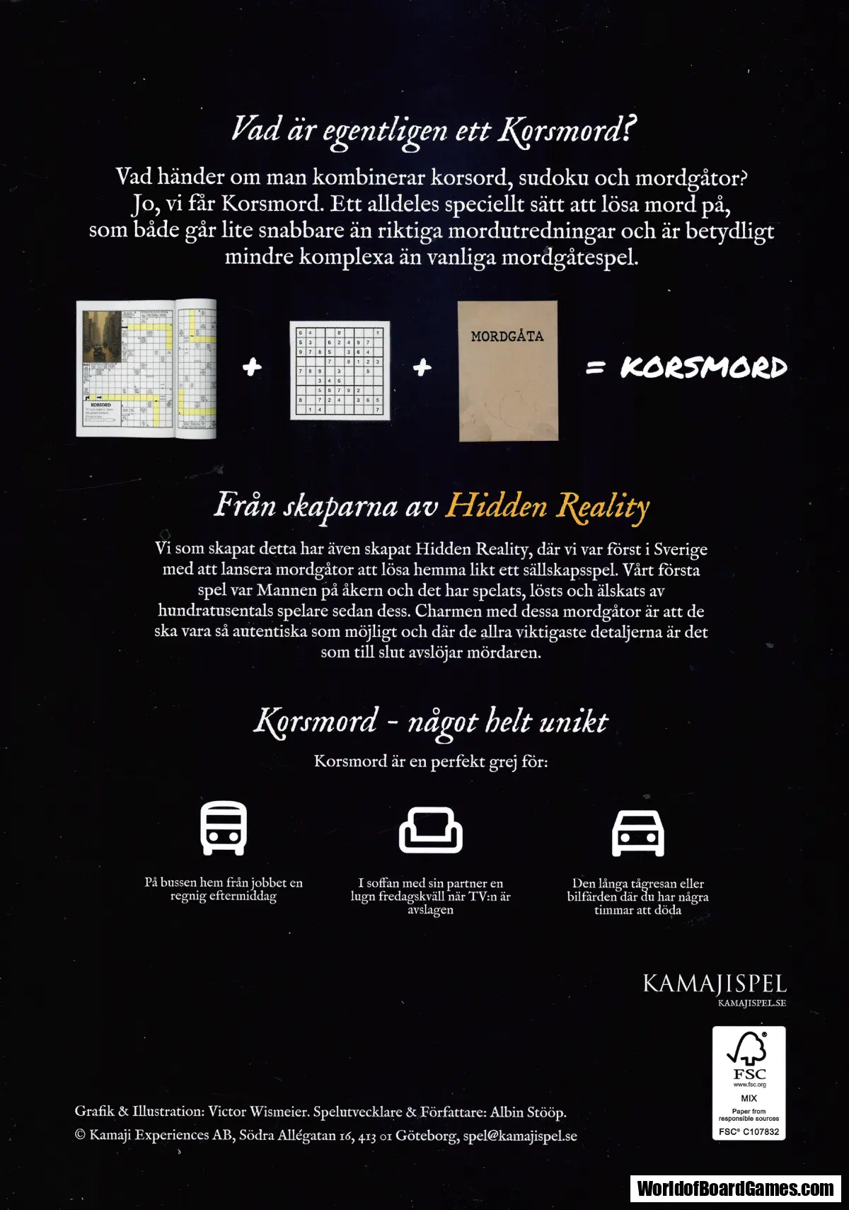 Vad händer om man kombinerar korsord, sudoku och mordgåtor? Jo, vi får Korsmord. Ett alldeles speciellt sätt att lösa mord på, som både går lite snabbare än riktiga mordutredningar och är betydligt mindre komplexa än vanliga mordgåtespel.