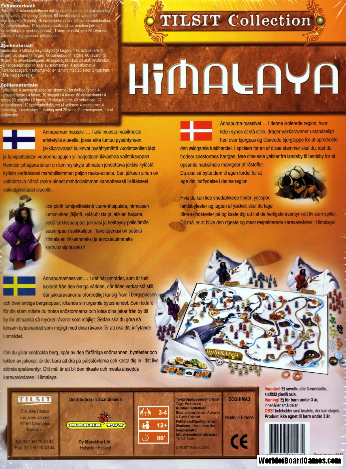 På Himalayas topp konkurrerar olika stammar om inflytande. Spelarna vandrar med sina oxar från by till by och samlar varor, offrar i tempel och sänder representanter till förhandlingar. Den intressantaste knorren i spelet är att alla spelarna samtidigt flyttar sina brickor: spelarna hetsar på sina oxar i förväg och avslöjar sina drag samtidigt. Det går bara inte att undvika sammanstötningar och misstag. Himalaya är ett spännande spel med oförutsägbara ändningar som håller spelarna på alerten under hela spelets gång.