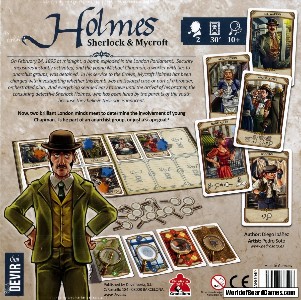 A game of Holmes: Sherlock & Mycroft lasts seven turns (days of investigation). At the beginning of each day, famous characters extracted from the books of Arthur Conan Doyle appear in London.