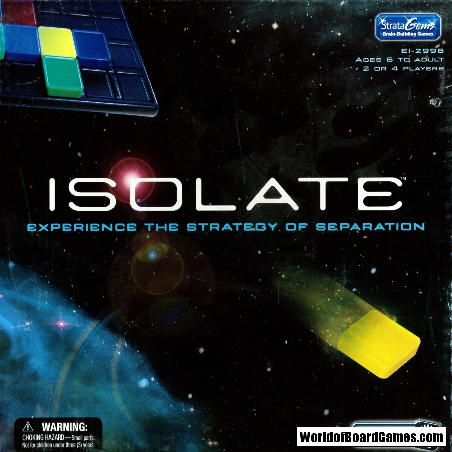 Grab your color tiles, arrange them on the game board, and isolate your tiles first to win! Simple to learn, but challenging enough for experienced competitors. Isolate is perfect for the entire family!