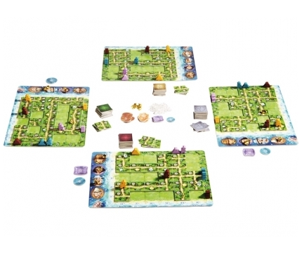 Skattbrickorna sorteras upp efter färg och form och placeras i fallande ordning mellan spelarna.