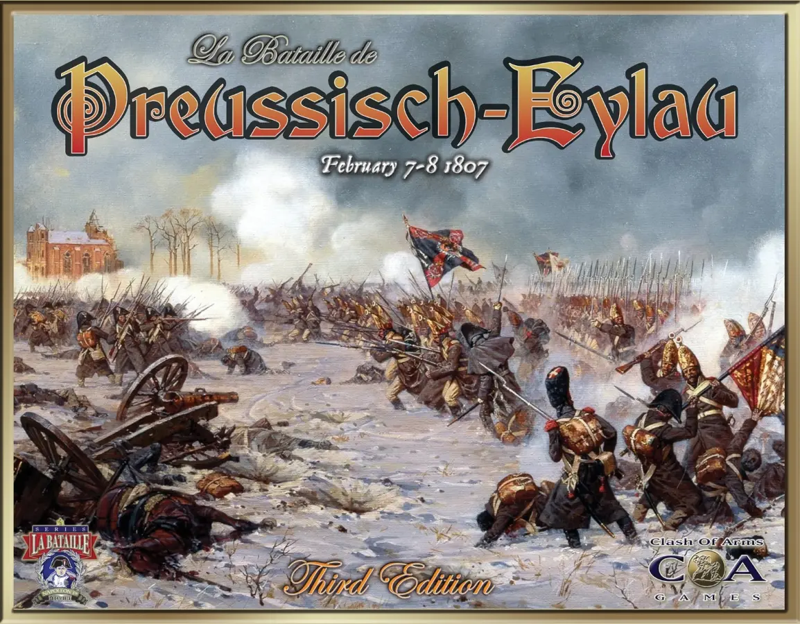 La Bataille de Preussisch-Eylau is a wargame simulation of Napoleon's epic winter battle on February 8th, 1807 against the remnants of the Prussian army under Lestocq and the Russian army commanded by Bennigsen.