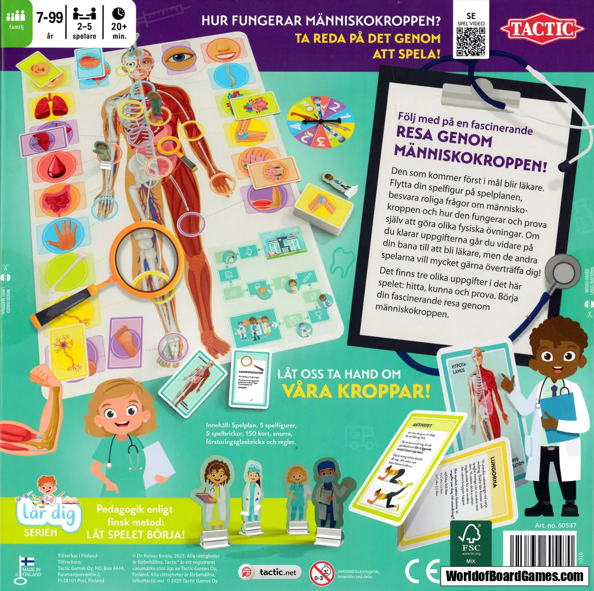Den som kommer först i mål blir läkare. Flytta din spelfigur på spelplanen, besvara roliga frågor om människokroppen och hur den fungerar och prova själv att göra olika fysiska övningar. Om du klarar uppgifterna går du vidare på din bana till att bli läkare, men de andra spelarna vill mycket gärna överträffa dig! Det tre olika uppgifter i det här spelet: hitta, kunna och prova. Börja din fascinerande resa genom människokroppen.