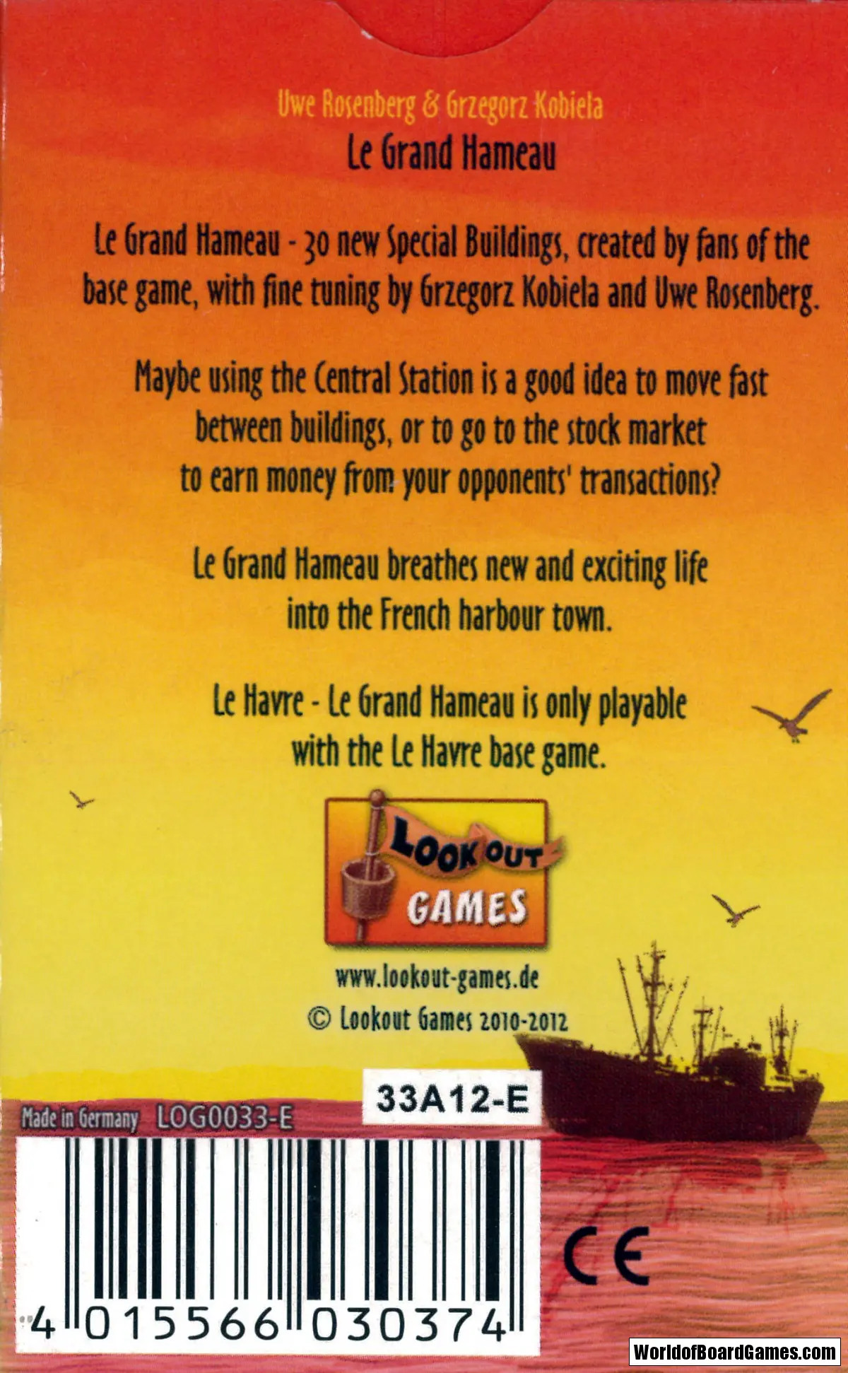 Le Grand Hameau is the first offical non-promo expansion set to Le Havre. It contains 30 new Special Buildings plus 3 cards with corrections to misprints from the base game. The deck is playable by itself (replacing the Special Building deck from the base game) or you can mix it with all the other Special Buildings.