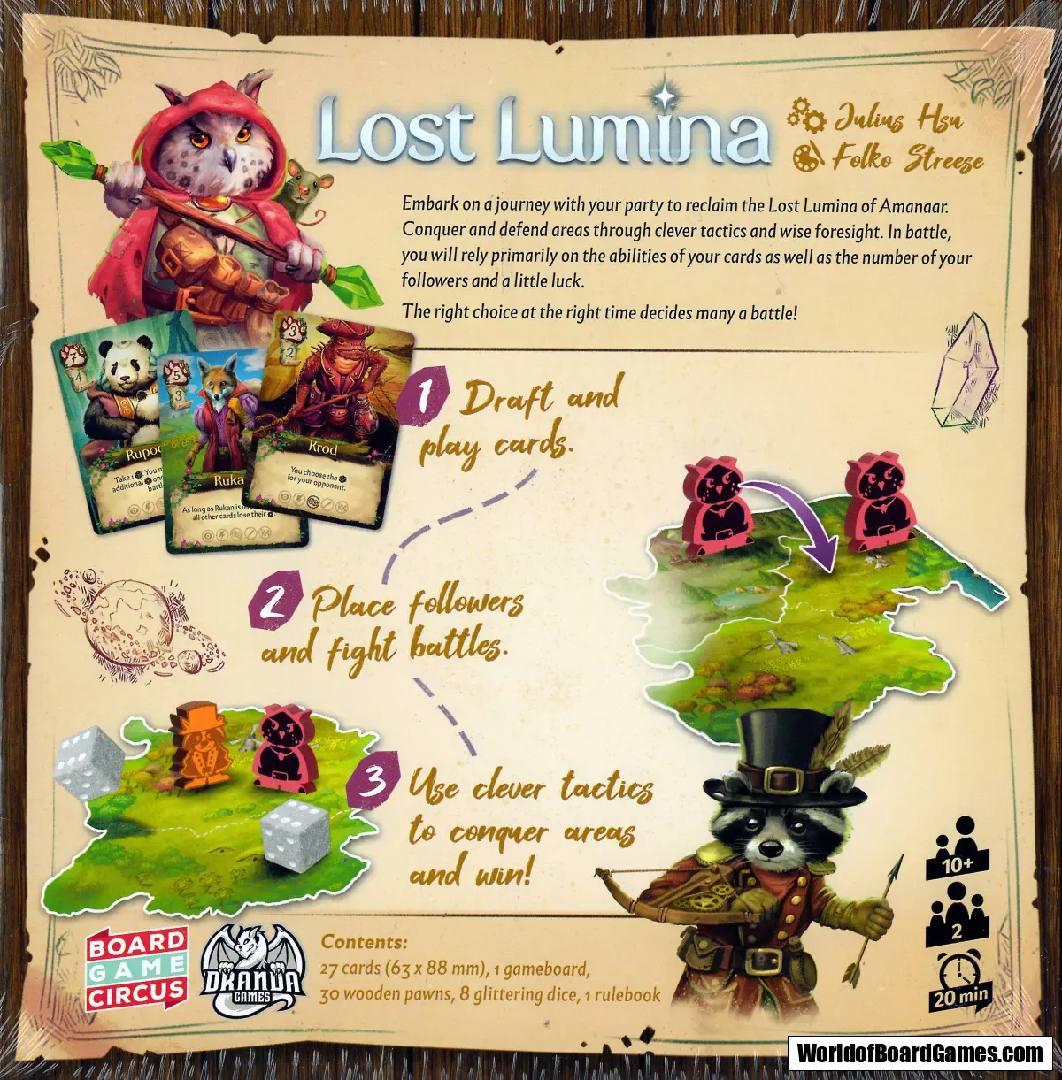 Deploy your animalistic party, maneuver across the map, and clash in dice-fueled battles to secure majority in each area. With 27 beautifully illustrated cards and streamlined rules, every 15–25 minute match delivers emergent strategy and replayability. Ideal for gamers aged 10+ seeking a quick yet tactical face-off.
