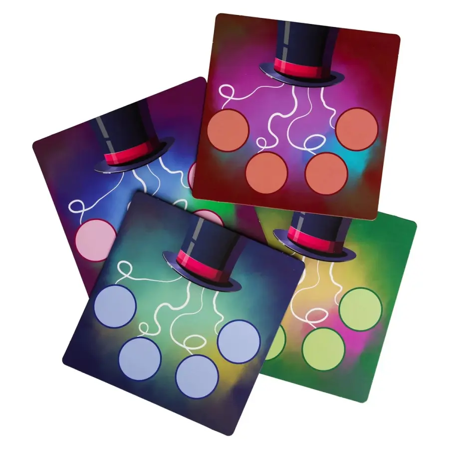 Bildbrickor placeras inuti spelboxen och spelarna får en stund att memorera dem. Sedan stängs locket, brickorna blandas och en av dem försvinner i hatten! Locket öppnas och spelarna försöker lista ut vilken bricka som saknas. Den som gissar rätt vinner brickan och den första som samlat fyra brickor vinner!