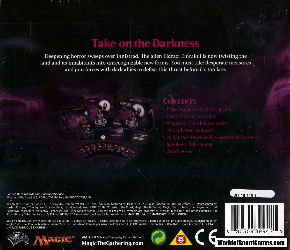 Includes a Player's Guide with pictures of all cards in the set as well as two full deck boxes, nine 15-card booster packs, 70 basic lands cards, 10 checklist cards, and a special-edition life counter.