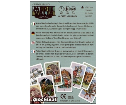 With this first Medievalia's expansion, an Action card deck is introduced. The new Action cards can be played any time, so as to stir the game up and make it really fun. The deck also contains new characters and new buildings.