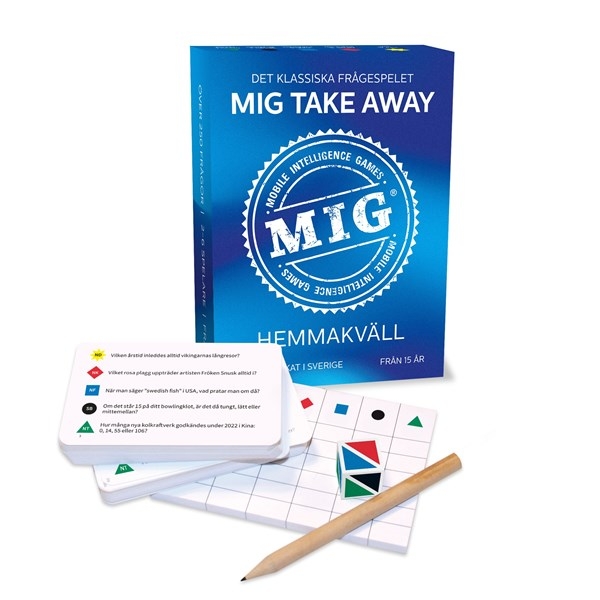 MIG Take Away – Hemmakväll är fyllt med frågor i en skön och underhållande blandning som passar alla. Tävla med kompisar, utmana familjen, skratta och lär nytt tillsammans. Spelet är lättspelat och perfekt att ta med till fredagsmys med vännerna eller för roliga stunder på semestern. Från 15 år.