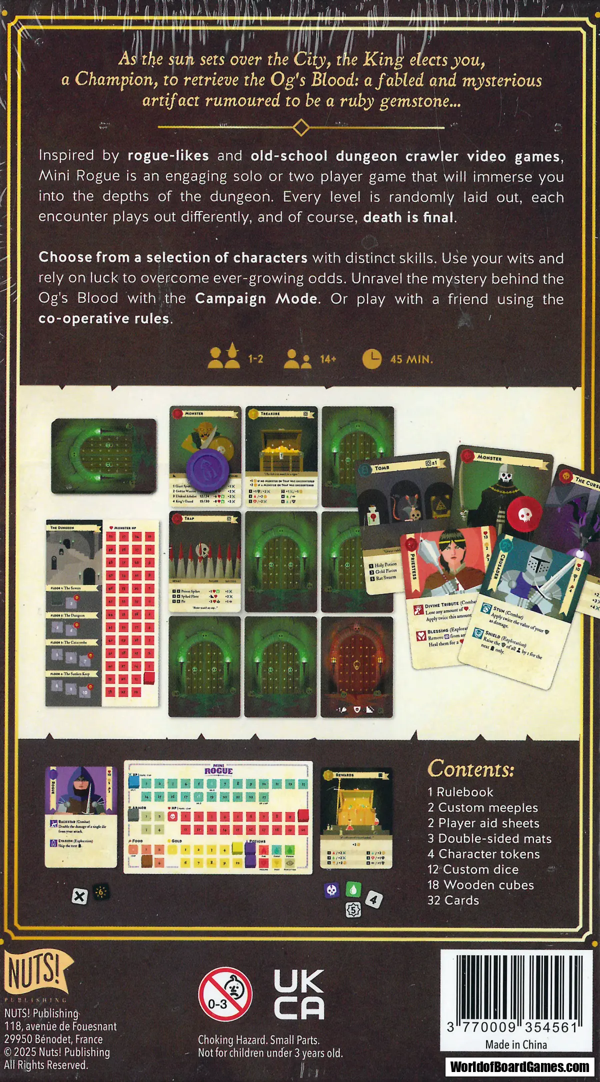 Mini Rogue är ett minimalistiskt dungeon crawler-brädspel där en eller två spelare dyker ner i en djup fängelsehåla för att få tag på en mystisk rubin som kallas Og's Blood.