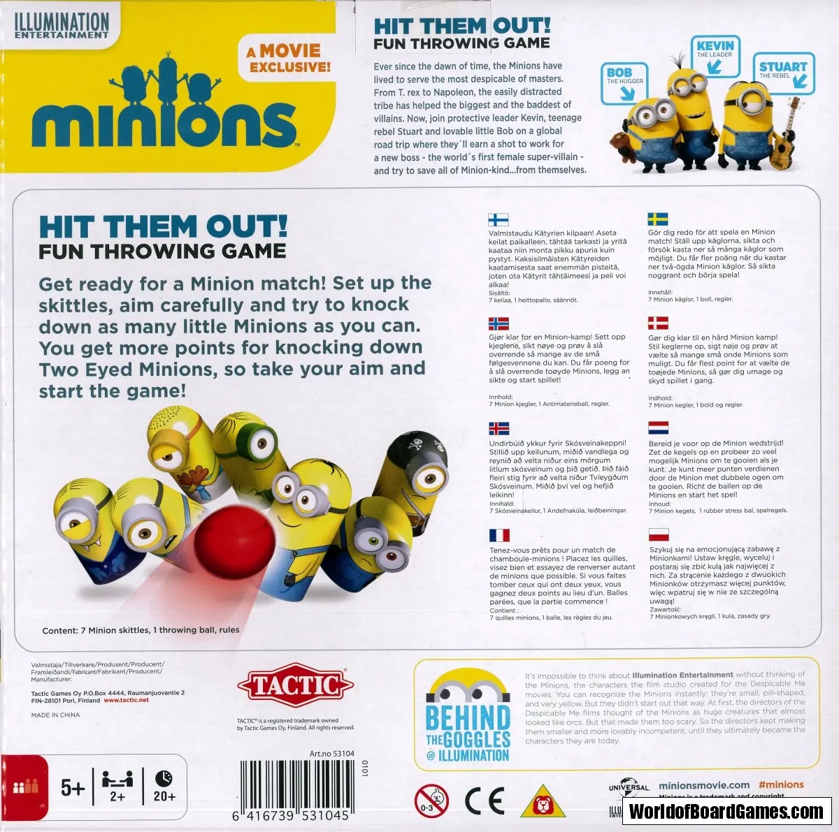 Försök att träffa Minion käglorna, först till 20 poäng vinner detta roliga spel! Kan spelas både inomhus och utomhus. Sikta noggrant och få mer poäng när du träffar tvåögda Minions.