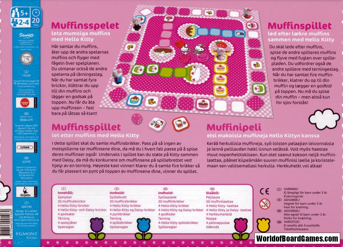 I Muffinsspelet försöker du klättra upp till din muffins och lägga en godsak på toppen. Du samlar på muffins och staplar dem ovanpå varandra för att komma till din muffins. Du får både äta upp de andra spelarnas muffins, utmana dem på tärningsslag och flyga med fågeln över spelplanen. När du har samlat fyra muffinsbrickor i din stapel, klättrar du upp till din muffins och lägger en godsak på toppen. Nu får du mumsa i dig din muffins - fast bara på låtsas såklart!