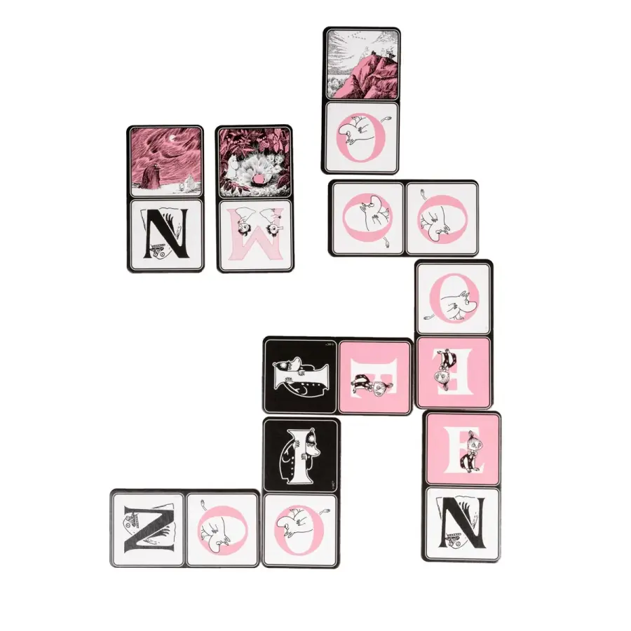 Det klassiska dominospelet består av 45 brickor med bokstäver och vackra motiv. I domino är en bricka uppdelad i två fält. Spelarna lägger brickor med likadana bilder mot varandra och försöker bli av med sina brickor så fort som möjligt för att vinna spelet!