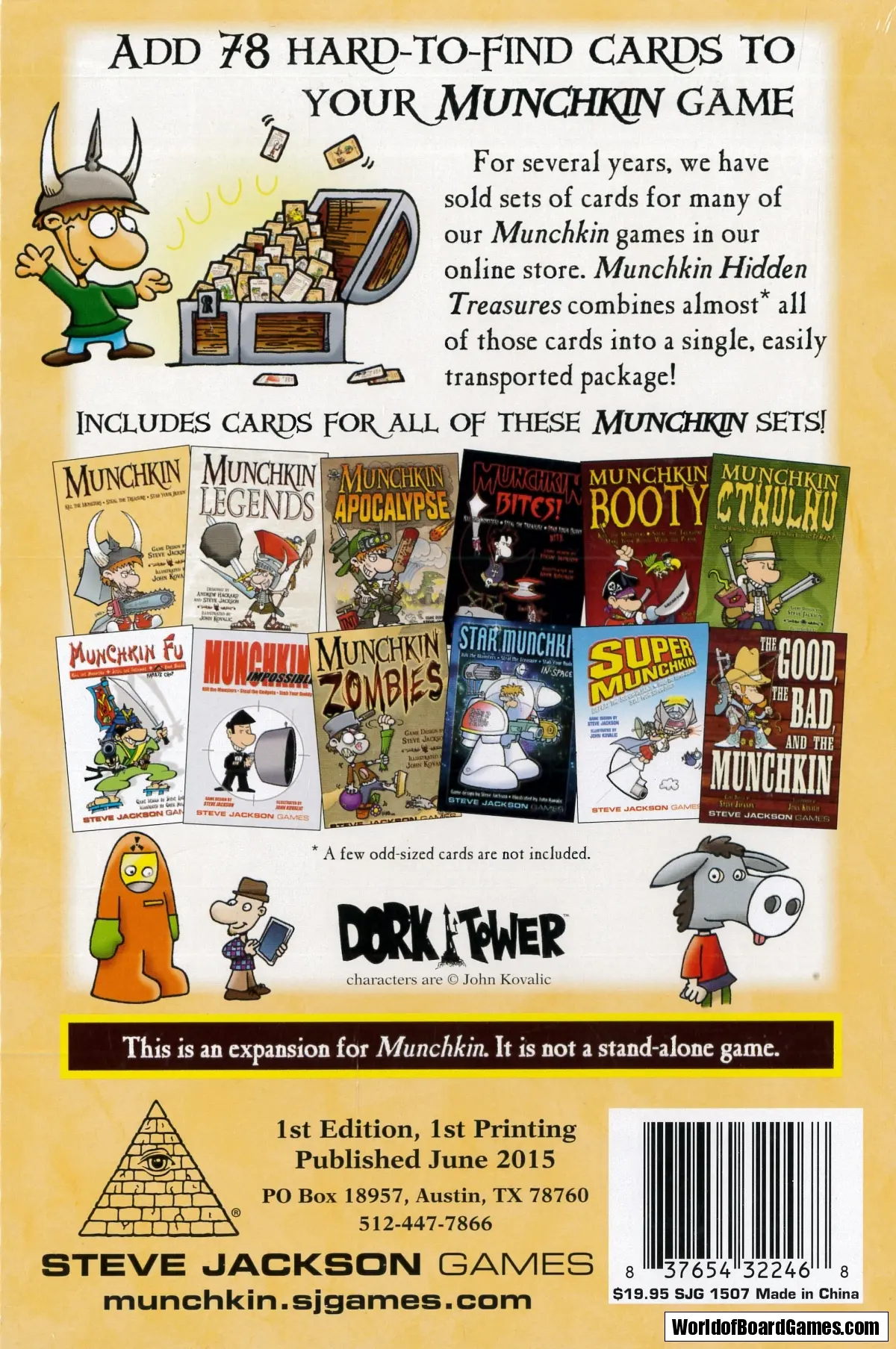 For several years, we have sold sets of cards for many of our Munchkin games in our online store. Munchkin Hidden Treasures combines almost* all of those cards into a single, easily transported package!