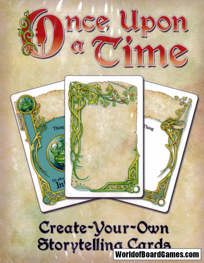 In Once Upon a Time, players tell a story together using cards that show fairytale elements and endings. Now give your own ideas life with the Create-Your-Own Storytelling Cards expansion. The 38 Story Cards and 17 Ending Cards in this set all have blank faces, so players can add their own inspiration to the game. Just use permanent markers to draw your own illustrations and titles on the cards, then mix them with your copy of the Once Upon a Time storytelling card game to let your fancy fly free!