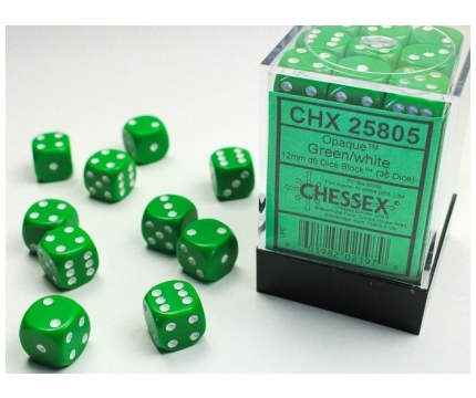 Opaque - Green/White - d6, 36 st (12 mm, prickar)