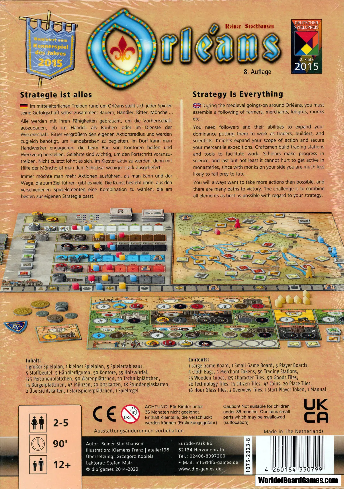 With Orléans, dlp games presents its most complex and comprehensive work to date. The aim of the game is to gain supremacy in medieval France through trade, building and science. The focus is on the city of Orléans and the Loire region, where you can undertake trading trips to other cities in order to obtain coveted goods and build trading posts.