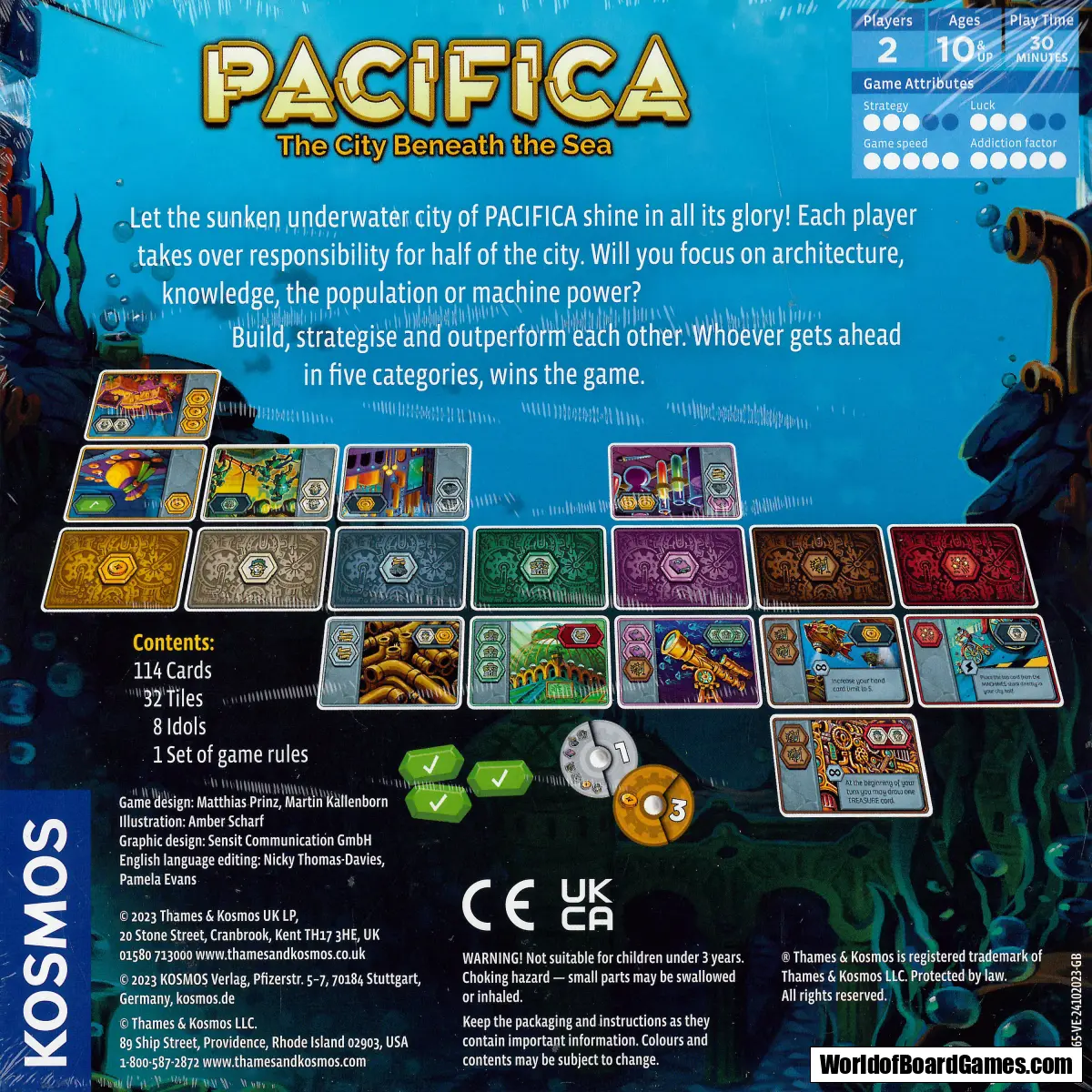 Let the sunken underwater city of PACIFICA shine in all its glory! Each player takes over responsibility for rebuilding half of the city. Build, strategise and outperform each other.
