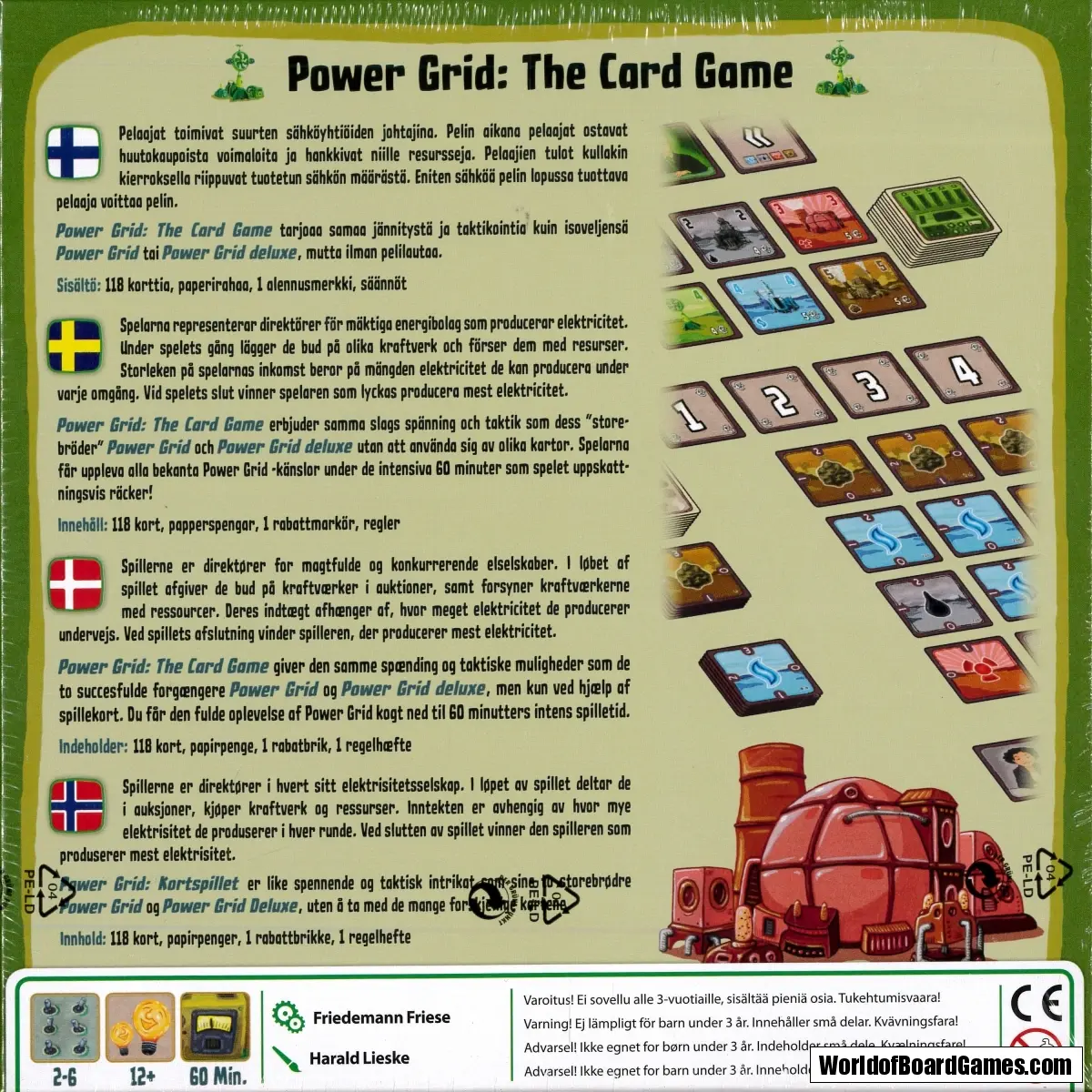 The players represent CEOs of mighty power companies producing electricity. During the game, the players bid for power plants at auctions and supply them with resources. Their income depends on the amount of electricity produced in each round. At the end of the game, the player who produces the most electricity wins.