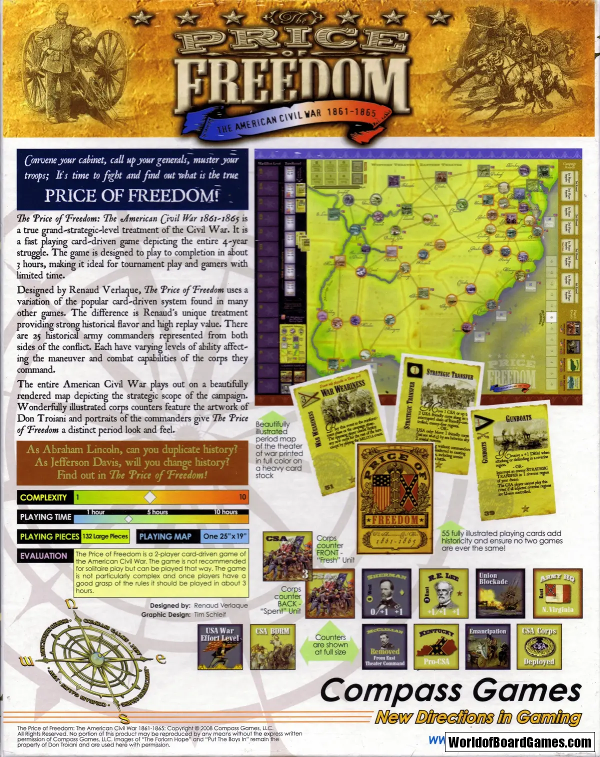The Price of Freedom: The American Civil War, 1861-1865 is Renaud Verlaque's second design (after the award-winning Age of Napoleon) and his first design published by Compass Games.