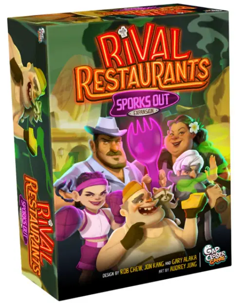 SPORKS Out also adds a new phase to the day, the Action Auction. Before Money and Move, players will get to bid with their leftover money from the previous day to buy one or two action cards from the powerful Snackle Box.