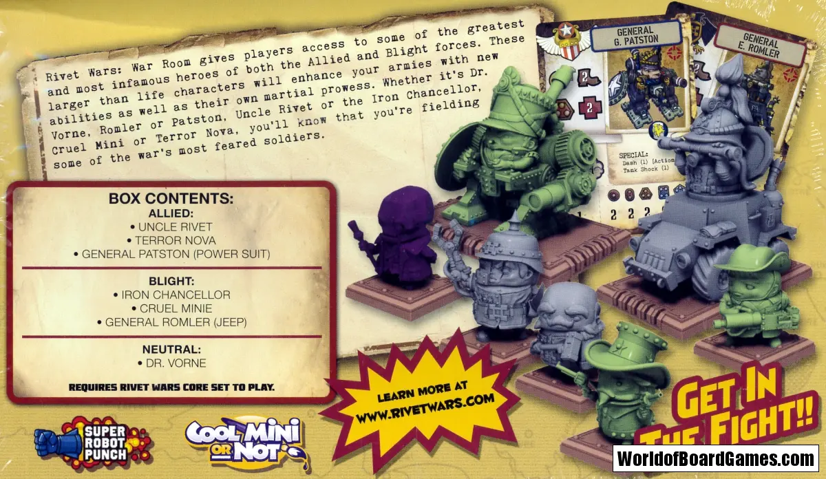 Rivet Wars: War Room gives players access to some of the greatest and most infamous heroes of both the Allied and Blight forces. These larger than life characters will enhance your armies with new abilities as well as their own martial prowess. Whether it’s Dr. Vorne, Romler or Patston, Uncle Rivet or the Iron Chancellor, Cruel Mini or Terror Nova, you’ll know that you’re fielding some of the war’s most feared soldiers.