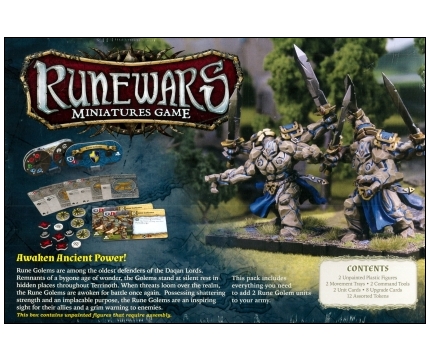 The Rune Golems Unit expansion features two Rune Golem Plastic Figures, one sculpt new to this expansion and one identical to the Rune Golem sculpt found in the Core set, as well as eight upgrade cards to help you build your army anyway you choose. Crush the enemies of Daqan beneath your feet with the Rune Golems Unit expansion.