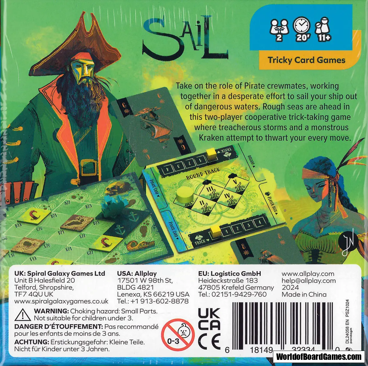 Strap up your piratical boots, and navigate your ship through turbulent waters in Sail, a co-operative trick-taking game for two players. Reach the end of this dangerous deep end, and avoid taking damage from the Kraken to win the game together...or your crew will be sleeping with the fish!