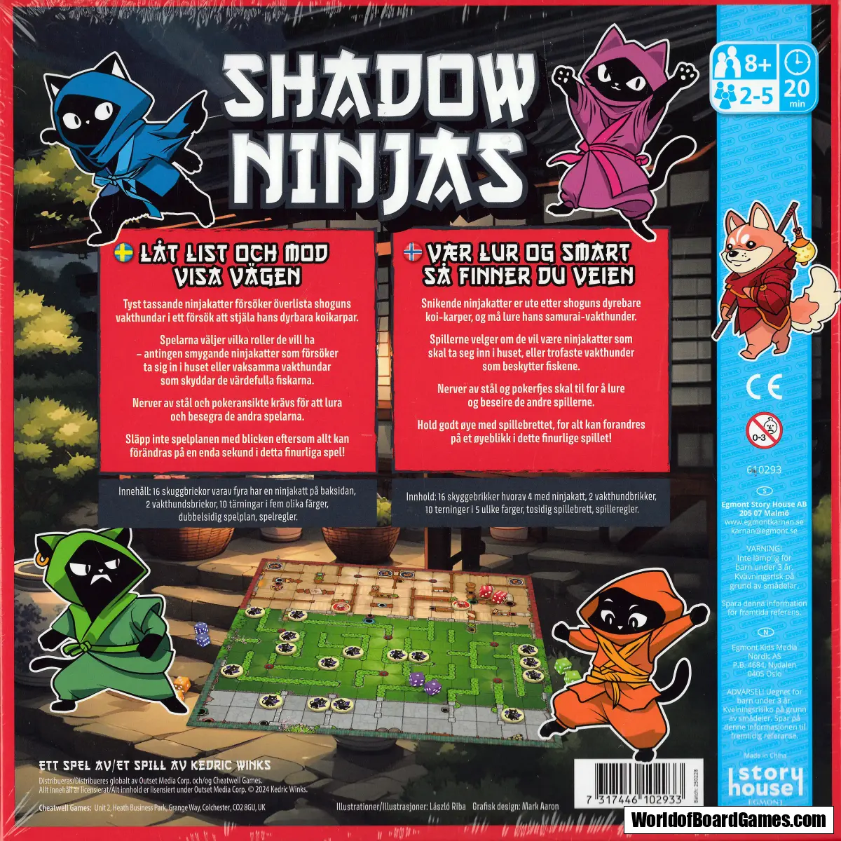 Tyst tassande ninjakatter försöker överlista shoguns vakthundar i ett försök att stjäla hans dyrbara koikarpar. Spelarna ska välja vilken roll de vill ha – antingen smygande ninjakatter som försöker ta sig in i huset eller vaksamma vakthundar som skyddar de värdefulla fiskarna. Man behöver ha ett riktigt bra pokeransikte för att lyckas överlista och utmanövrera sina motståndare. Släpp inte spelplanen med blicken eftersom allt kan förändras på en enda sekund i detta finurliga spel.