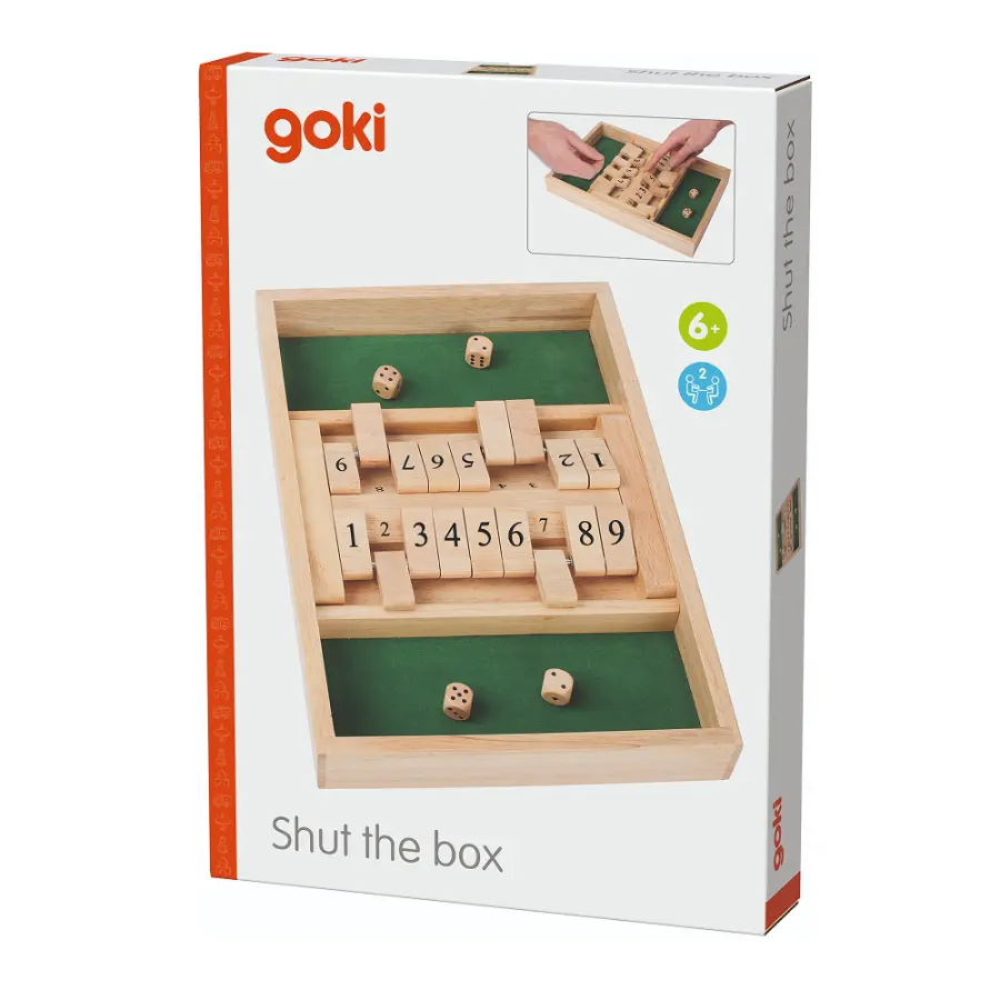 I Shut The Box kastar du med två tärningar och stänger de siffror som matchar ditt kast. Men se upp – kan du inte stänga någon, behåller du summan som poäng. Spelet vänder poänglogiken på huvudet: den med minst poäng vinner!