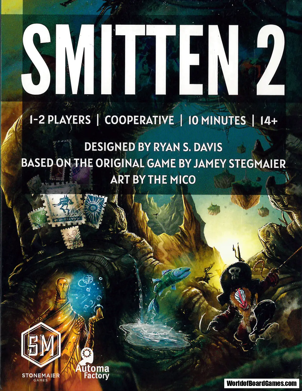 Smitten 2 is a cooperative micro-game for 1-2 players. The 9 new cards in this standalone sequel are designed by Ryan S. Davis. In Smitten 2, players work cooperatively with limited information/communication to complete two identical 3×3 grids of cards, each inspired by Stonemaier games released since the original Smitten and illustrated by The Mico. There are multiple difficulty levels and separate modes for solo and 2-player games.