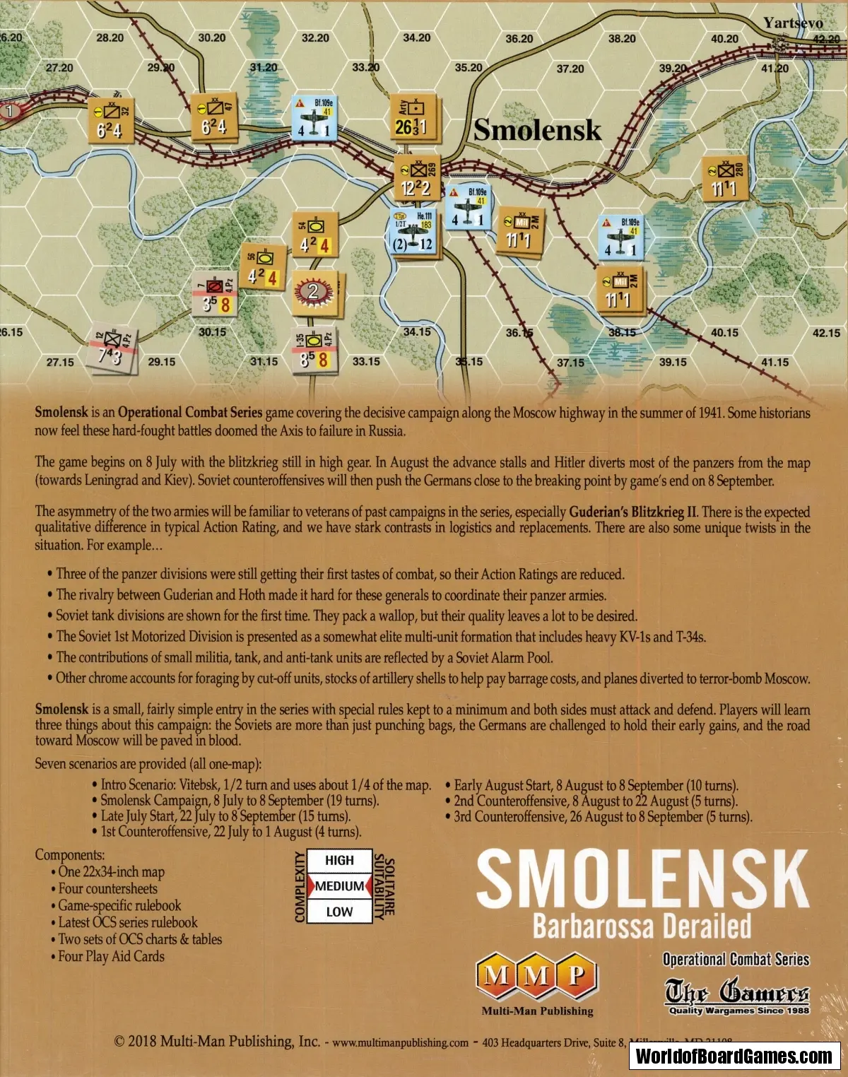 Smolensk is a small and fairly simple entry in the series, with special rules kept to a minimum. We think players will enjoy the fact both sides must attack and defend. By the end they will learn three things about this campaign: the Soviets are more than just punching bags, the Germans are challenged to hold their early gains,