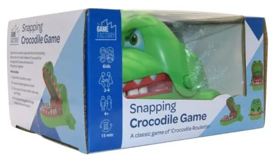 Det klassiska krokodil-roulettespelet där det gäller att undvika att trycka ner krokodilens ömma tand. Om du har otur och väljer den ömma tanden så stänger krokodilen munnen och biter dig i fingret. Spelet kan spelas själv eller tillsammans med andra.