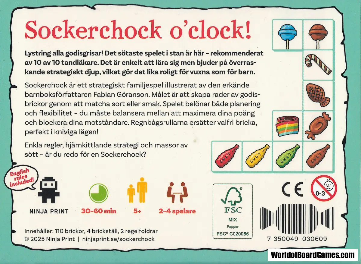 Sockerchock är ett härligt strategiskt familjespel som kombinerar enkelhet med överraskande djup, vilket gör det roligt för både vuxna och barn.