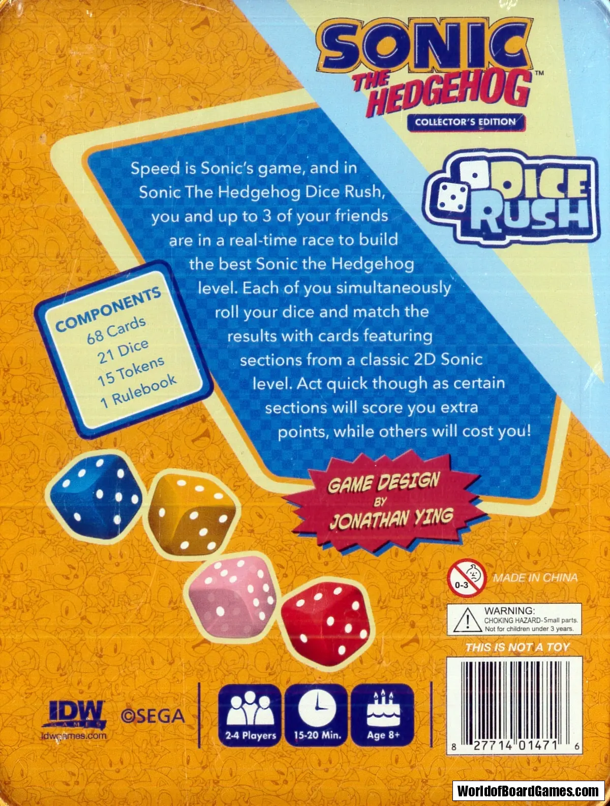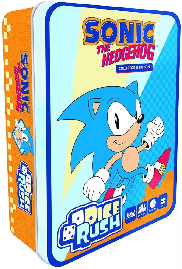 Speed is Sonic’s game, and in Sonic The Hedgehog Dice Rush, 2 to 4 players are in a real-time race to build the best Sonic the Hedgehog level. Players simultaneously roll their dice and match the results with cards featuring section from a classic 2D Sonic level. Act quick though as certain sections will score you extra points, while others will cost you!