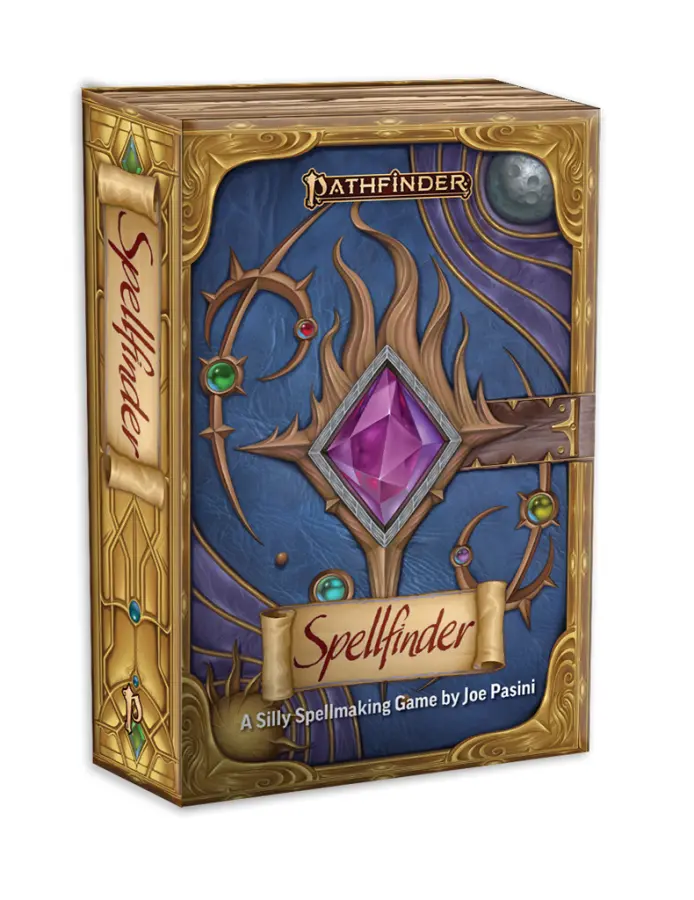 In the silly, spell-slinging party game, Spellfinder, you and your friends are student wizards at a prestigious magical university, mashing up magic words to create problem-solving spells!
