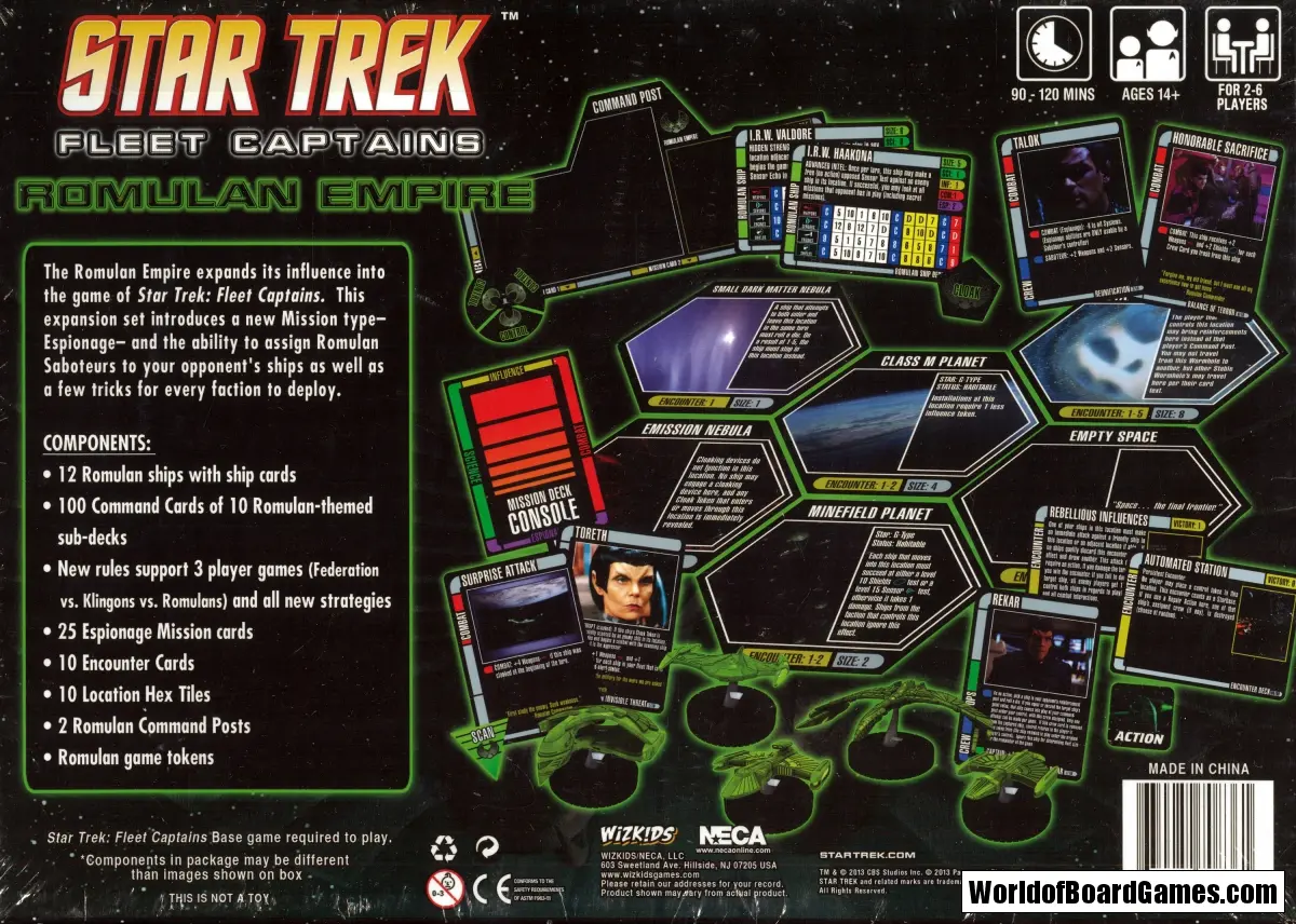 Kategori: Figurer, Film / TV / Radio, Science Fiction, Rymden, Action points, Områdeskontroll, Kortdrivet, Tärning, Modulär spelplan, Placera brickor