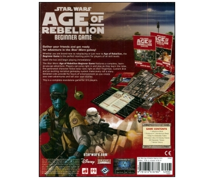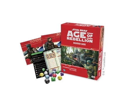 The Star Wars®: Age of Rebellion™ Beginner Game is the perfect entry into the Star Wars: Age of Rebellion roleplaying experience for players of all skill levels. With its complete, learn-as-you-go adventure, players can open the box and immediately dive into their roles as members of the Rebel Alliance, desperately fighting against the superior might of the galactic Empire. Pre-generated character folios keep the rules right at your fingertips, while custom dice and an exciting narrative gameplay system advance your story with every roll. The Age of Rebellion Beginner Game is a complete, standalone product and contains everything three to five players need to adventure in the Star Wars universe. While the Age of Rebellion Beginner Game can be enjoyed by players of any skill level, it presents a simplified and abridged version of the full Age of Rebellion rules.