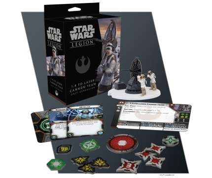 Within the 1.4 FD Laser Cannon Team Unit Expansion, you’ll find an unpainted, easily assembled 1.4 FD Laser Cannon Team miniature that can be fielded as a support unit for your Rebel army. Alongside this team, you’ll find three upgrade cards that invite you to further modify your cannon to make it an even more stalwart line of defense against the forces of the Empire.