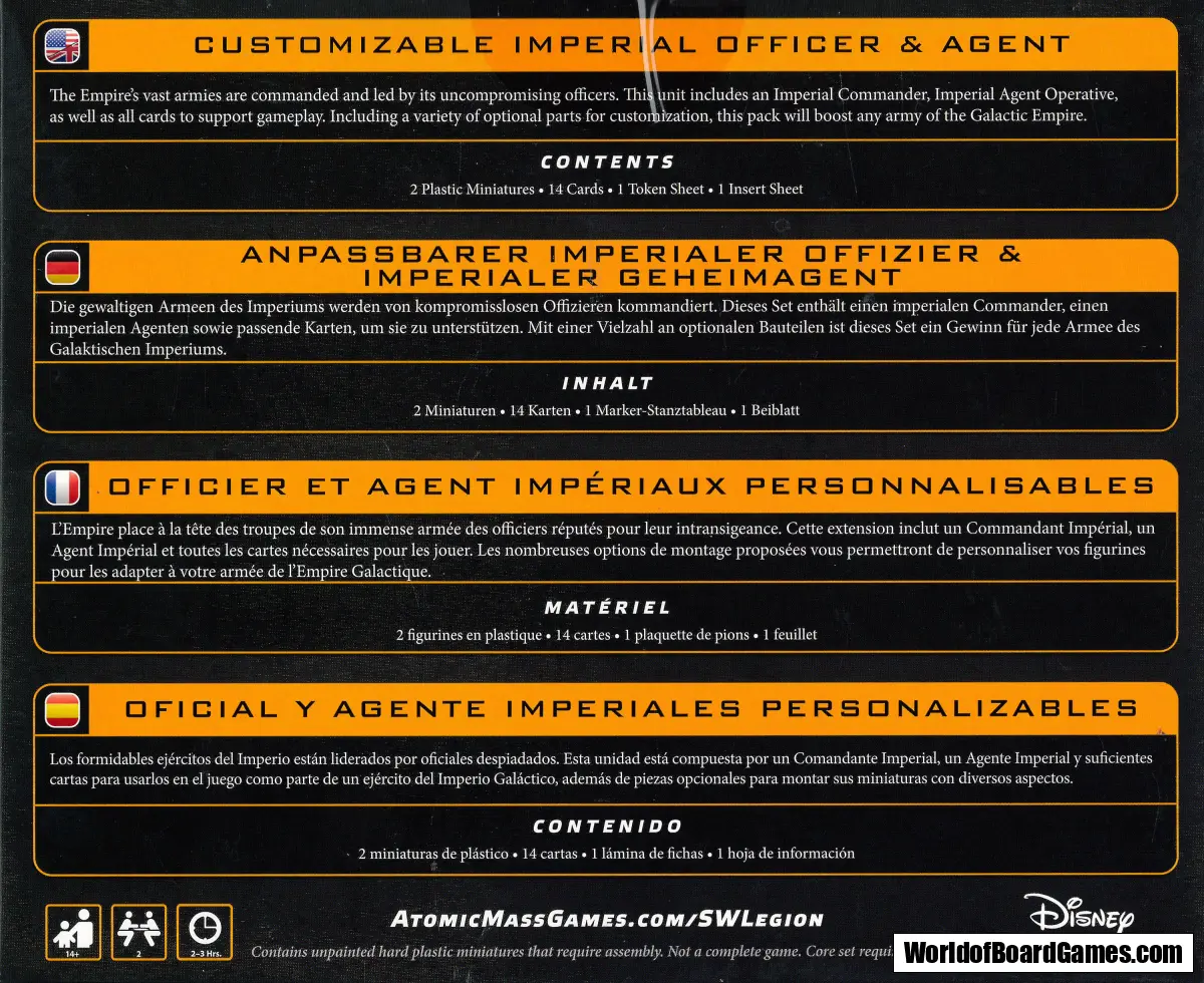 This pack includes over 20 optional parts players can choose from when assembling their miniatures, allowing for a huge range of personal customization for each character. Players also customize their Imperial Officer and Agent’s in-game abilities using the 10 unique Upgrade cards included in this expansion. Each of these unique upgrades dramatically changes the battlefield role, abilities, and synergies the character brings to the army.