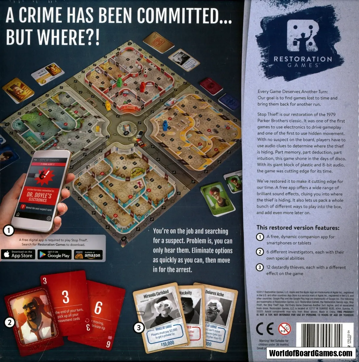 We’ve restored it to make it cutting edge for our time. A free app offers a wide range of brilliant sound effects, cluing you into where the thief is hiding. It also lets us pack a whole bunch of different ways to play into the box, and add even more later on.