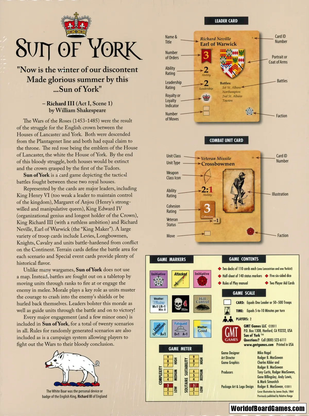 Sun of York is a card game depicting the tactical battles fought between these two royal houses.