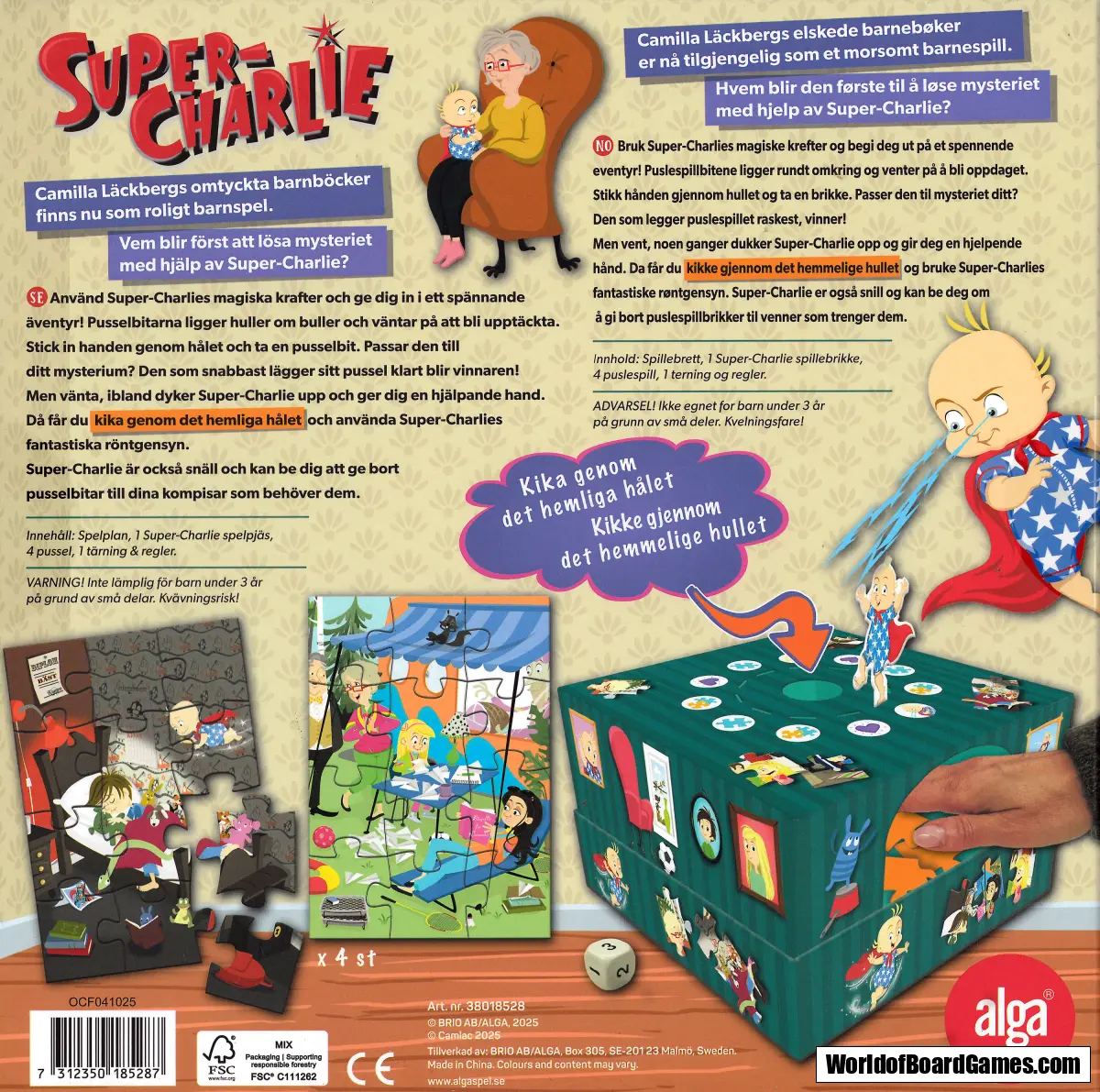 Använd hans magiska krafter! Pusselbitarna ligger huller om buller. Stick in handen genom hålet och ta en pusselbit. Hör den till ditt mysterium? Vinner gör den som snabbast lagt sitt pussel klart. Ibland kommer Super Charlie och hjälper dig. Då får du kika genom hemliga hålet och använda Charlies röntgensyn. SuperCharlie är snäll och ber dig ibland ge bort pusselbitar som dina kompisar behöver.