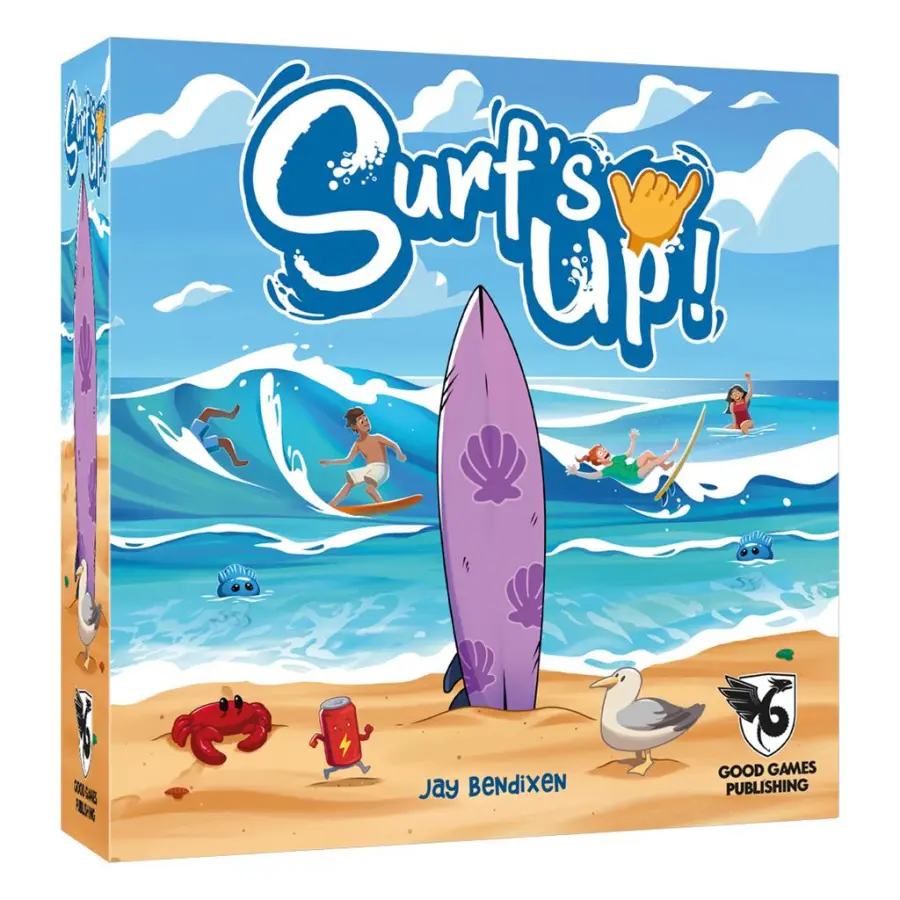 Players study incoming waves, predict rival intentions, and choose how hard to paddle with the goal of catching high scoring waves using low energy cards. Respect can swing ties or be traded at the beach for extra energy or upgraded surfboards, adding layers of tactical choice. With thematic hazards, evolving goals, and frequent surprise moments, Surf's Up offers fast paced fun and immersive wave riding excitement for players of all ages.