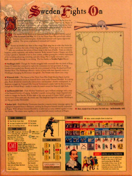 Sweden Fights On is a tactical battle game featuring four battles from the later half of the Thirty Years War.