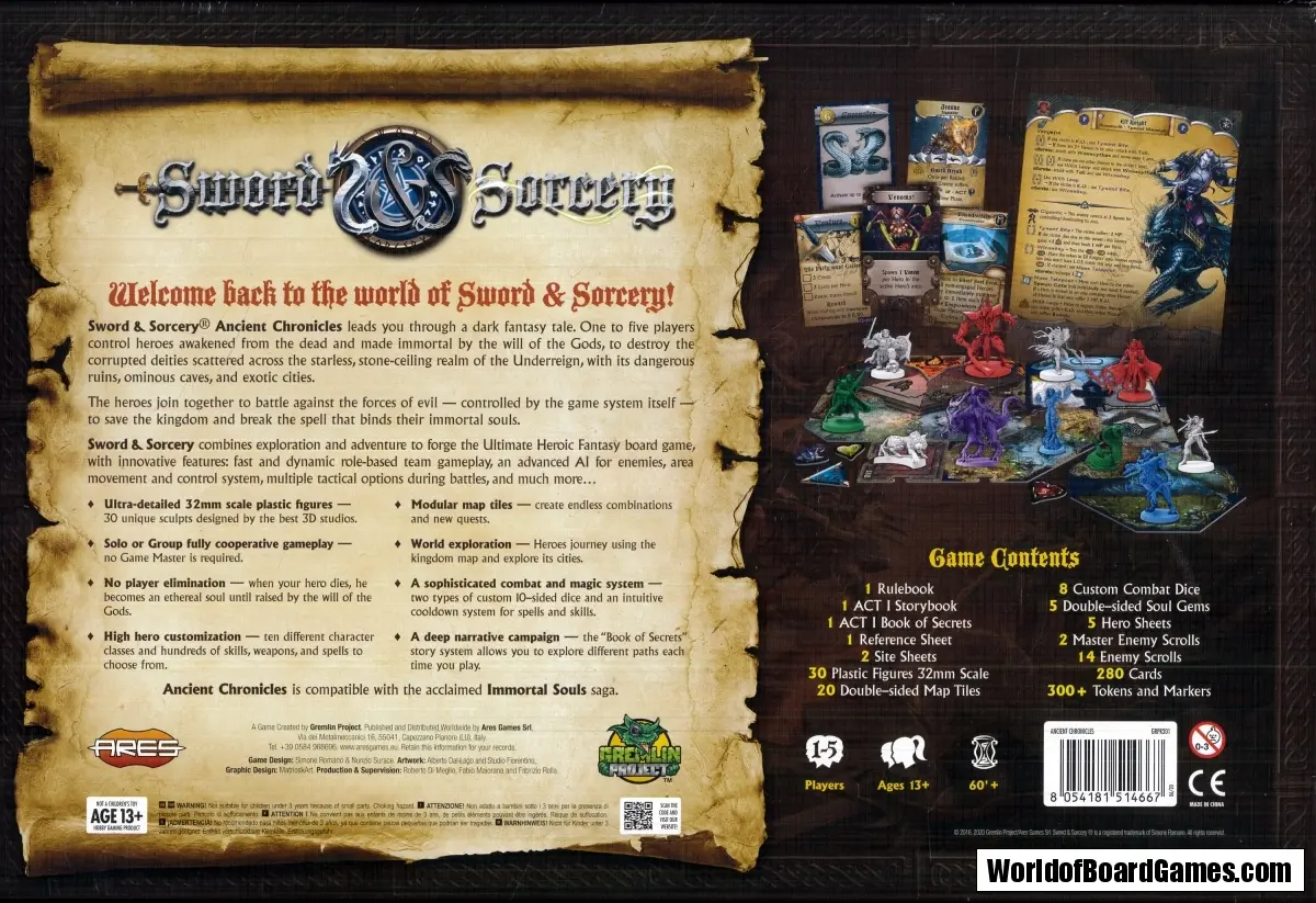 Sword & Sorcery - Ancient Chronicles is a fully cooperative fantasy board game where players control legendary heroes with unique powers. One to five players control heroes awakened from the dead and made immortal by the will of the Gods, to destroy the corrupted deities scattered across the starless, stone-ceiling realm of the Underreign, with its dangerous ruins, ominous caves, and exotic cities. This new season will bring the game system to the next level, with new features enhancing the storytelling and broadening the scope of the players’ adventures, introducing a greater variety of enemies, and more possibilities for the Heroes. In Sword & Sorcery: Ancient Chronicles players will find ultra-detailed 32mm scale plastic figures, playable Solo or fully cooperative Group gameplay (no Game Master is required!) using modular map tiles, creating endless combinations of scenarios. It will be possible to explore the world of Sword&Sorcery employing a kingdom map and exploring the cities, using a sophisticated combat and magic system to fight enemies,
