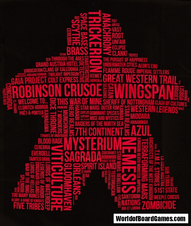 T-shirt: Mr. Meeple - Red Meeple Wordle, Version 2: Trickerion (Black) - 5X-Large